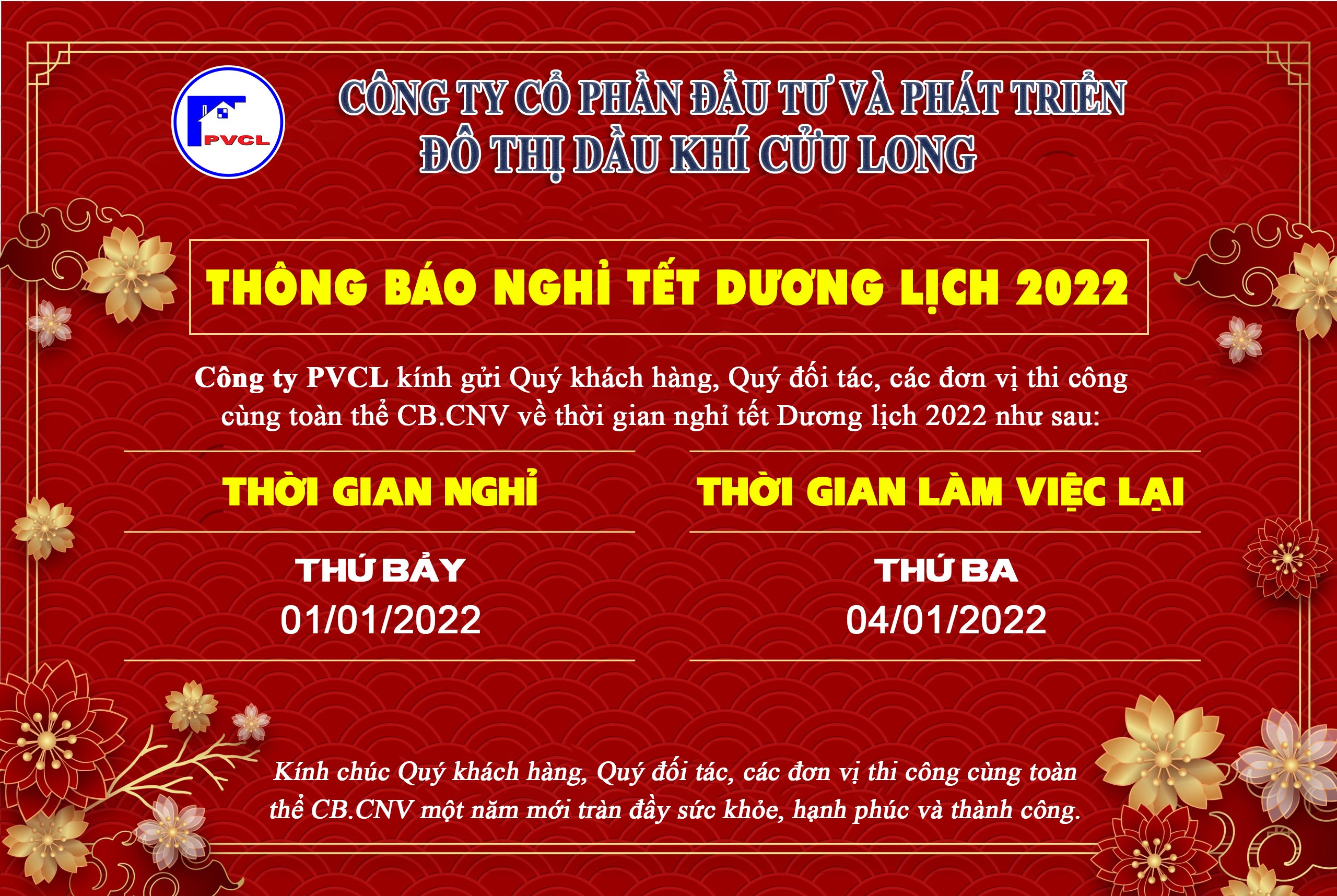 Lịch nghỉ tết Dương lịch 2022
